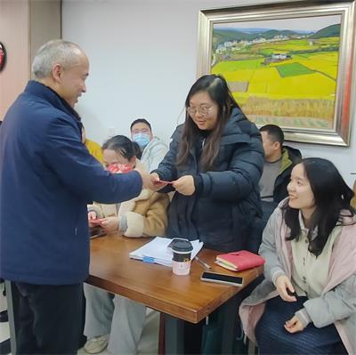 大会最后,迎来温馨喜庆的新年红包发放环节。董事会主席刘治勇为每一位员工亲手送上新年红包,承载着公司的新春祝福与深切关怀,既是暖心心意,更是前行期许与奋进鼓励。